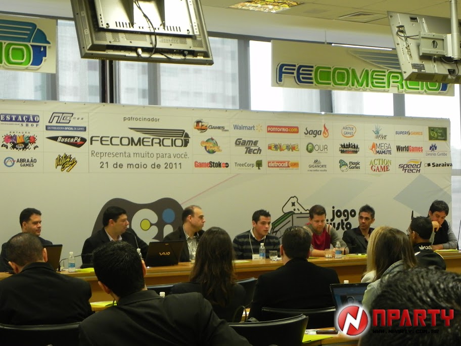Fiquei muito surpreso com o local. É de um nível extremamente superior ao do dia do Jogo Justo anterior, com a melhor infraestrutura para portar uma conferência de imprensa. Estavam presentes os mais diversos jornalistas especializados em games, desde blogs até mídias da TV e internet.